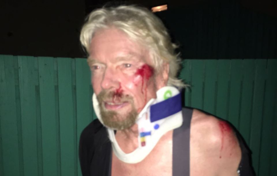 Daredevil billionaire businessman Richard Branson nearly lost his life after crashing on his training bicycle.