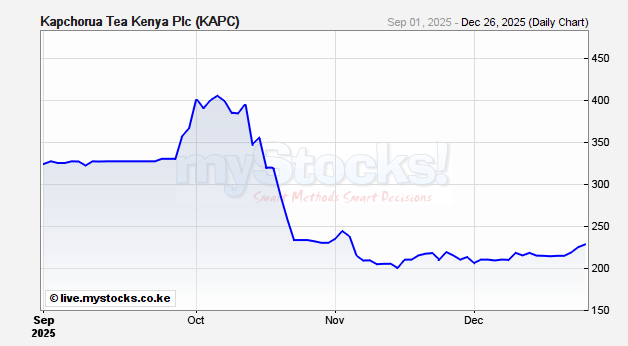 Kapchorua saw its Half-Year Net Profits jump 422% to KSh 92.2million, as at September 2025 compared to KSh 18.2 million over a similar period last year. This is against a 24% drop in Revenue from KSh 1.0948 billion in H1 2024 to KSh 829.49 million in September this year.